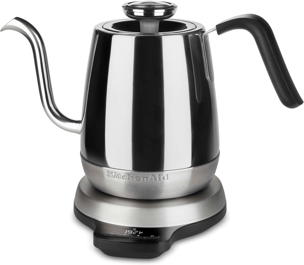 Bodum 34oz Bistro Gooseneck Electric Water Kettle, Pour Over Coffee & Tea, Brushed Stainless SteelKitchenAid Burr Coffee GrinderBodum 12oz Brazil French Press Coffee Maker, High-Heat Borosilicate Glass, Black – Made in Portugal